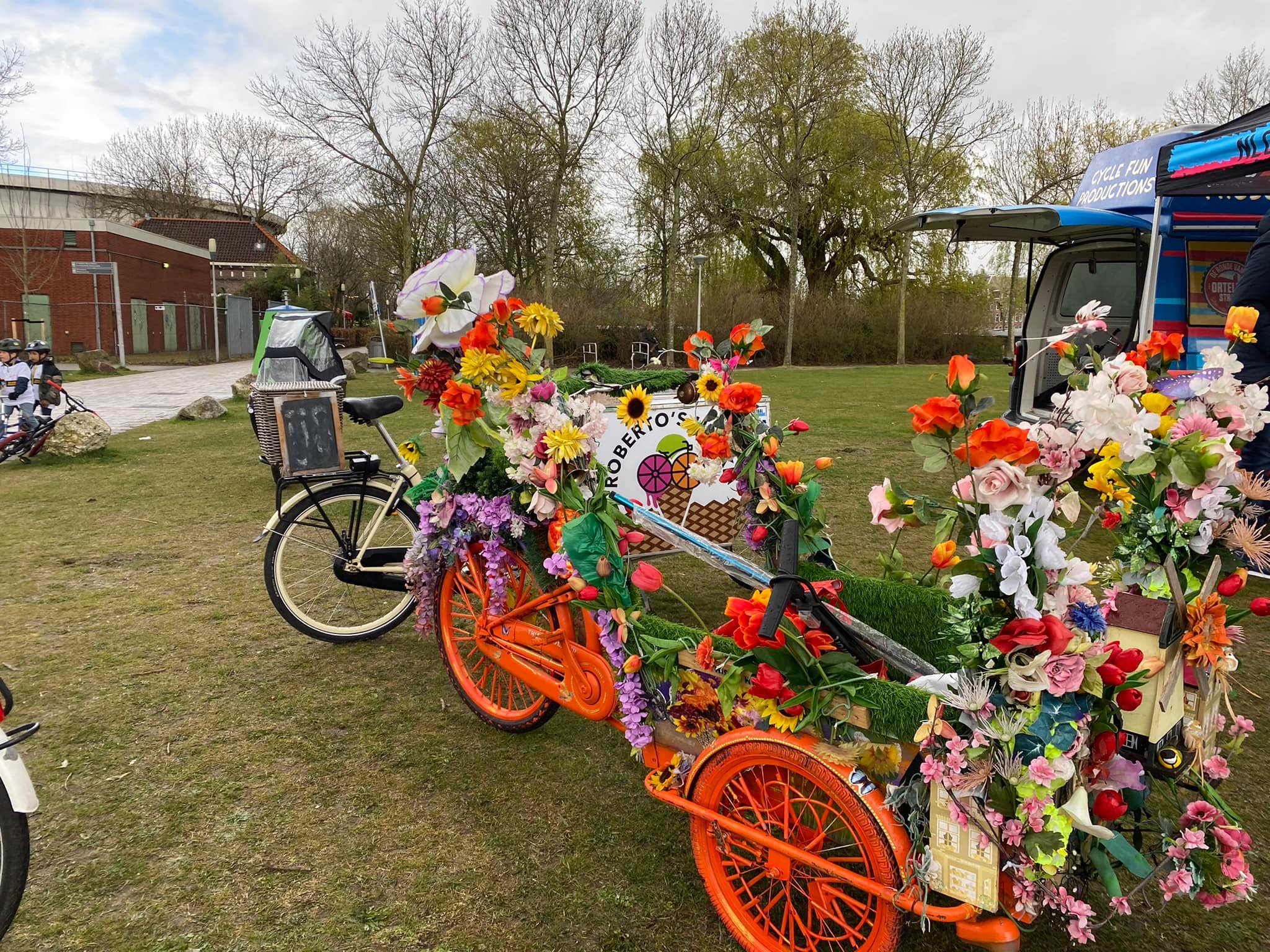 As the weather in the Netherlands is changing in one hour at least 5 times, Sunday in Westerpark was the same: sunny, rainy, then sunny, again rain, but it did not matter as long as we had fun. The event ended with a nice Flower Bike parade with the kids and their parents.